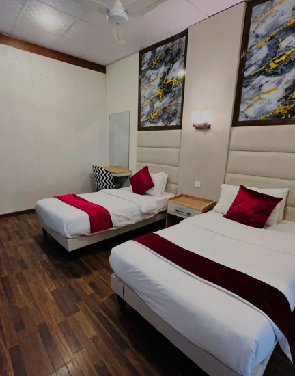 Book the perfect family getaway in Islamabad. Our Luxury Family Suite features 2 separate bedrooms, a private sitting area, and kid-friendly amenities. Safe, secure, and spacious accommodation for 4.